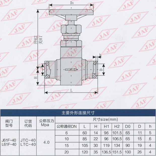 插焊連接直通截止閥J61F-40、節(jié)流閥L61F-40